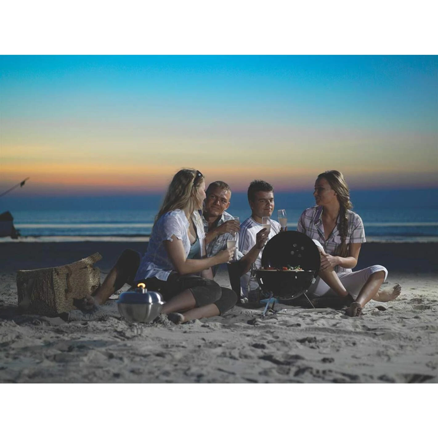 Sa large anse garantit un transport facile et sert de guide couvercle une fois le barbecue posé. Son trépied assure une bonne stabilité et garde la cuve à distance du sol. Avec sa poignée en nylon renforcé à la fibre de verre, manipulez le couvercle facilement et sans risque de brûlure.