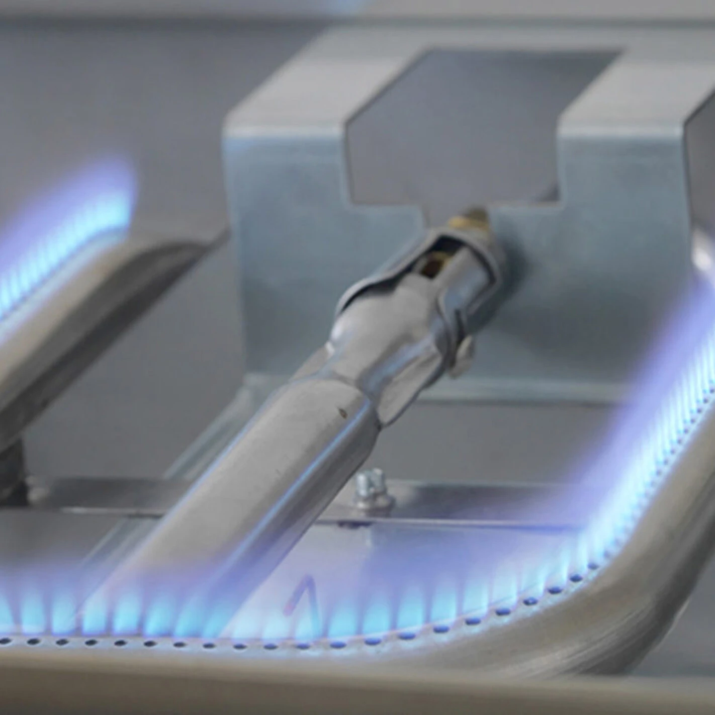 Plancha gaz inox (plaque + châssis) suffisamment grande pour cuisiner pour 6 à 8 personnes.