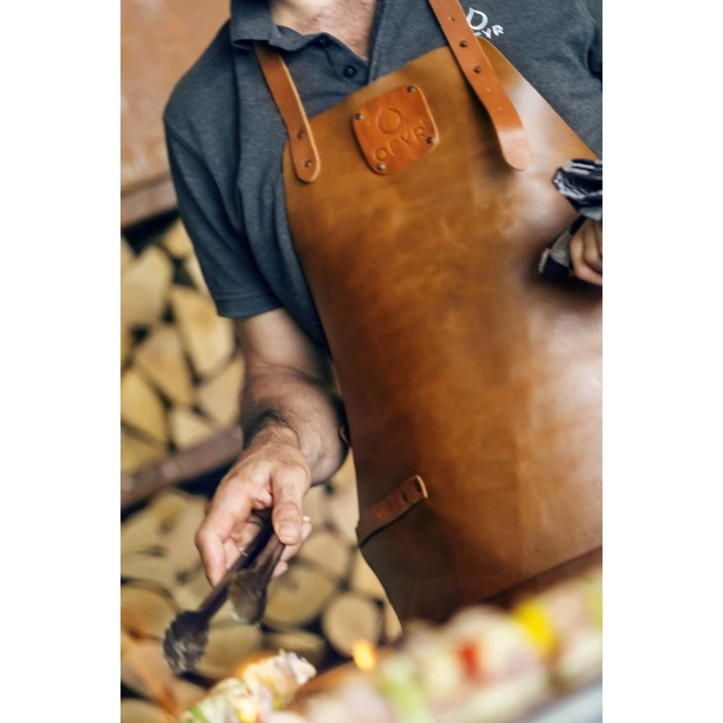 Ce magnifique tablier en cuir vous assure une double protection lorsque vous cuisinez avec un brasero OFYR :